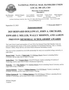 Local 300 Scholarship winner, Nevin Roy son of Local 300 member Roy Mathew of the Teterboro P&DC.